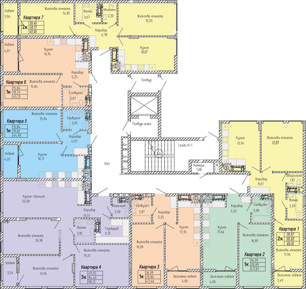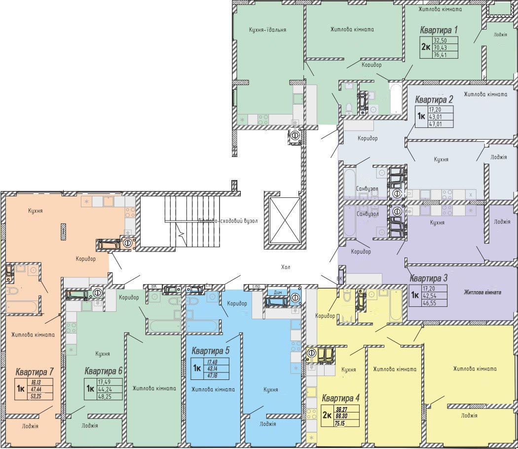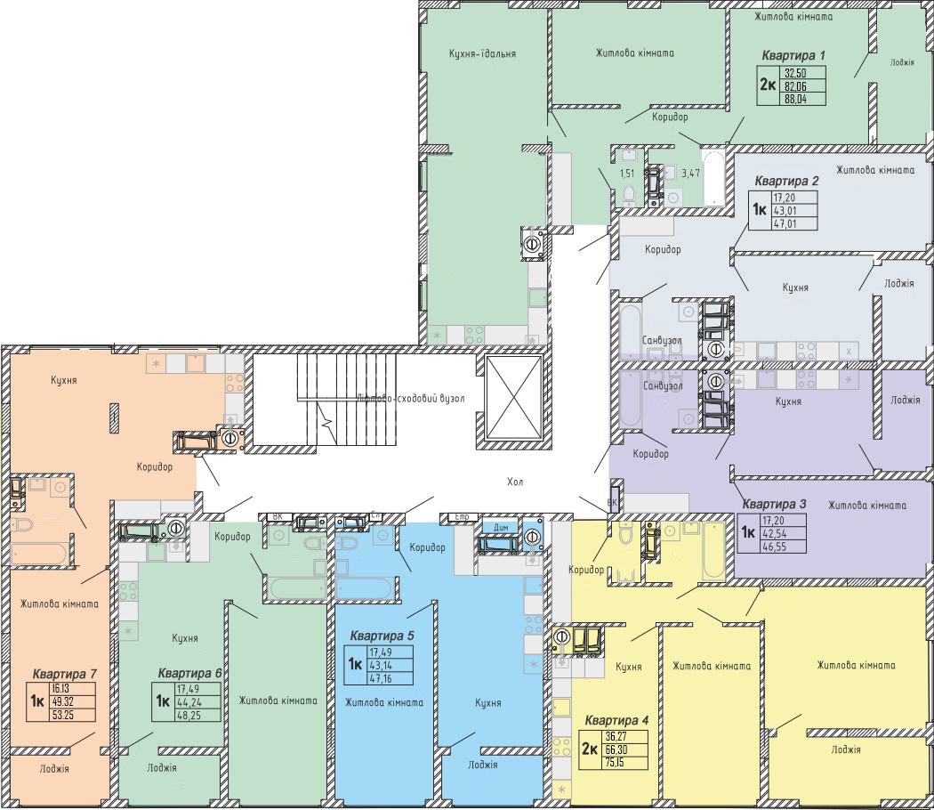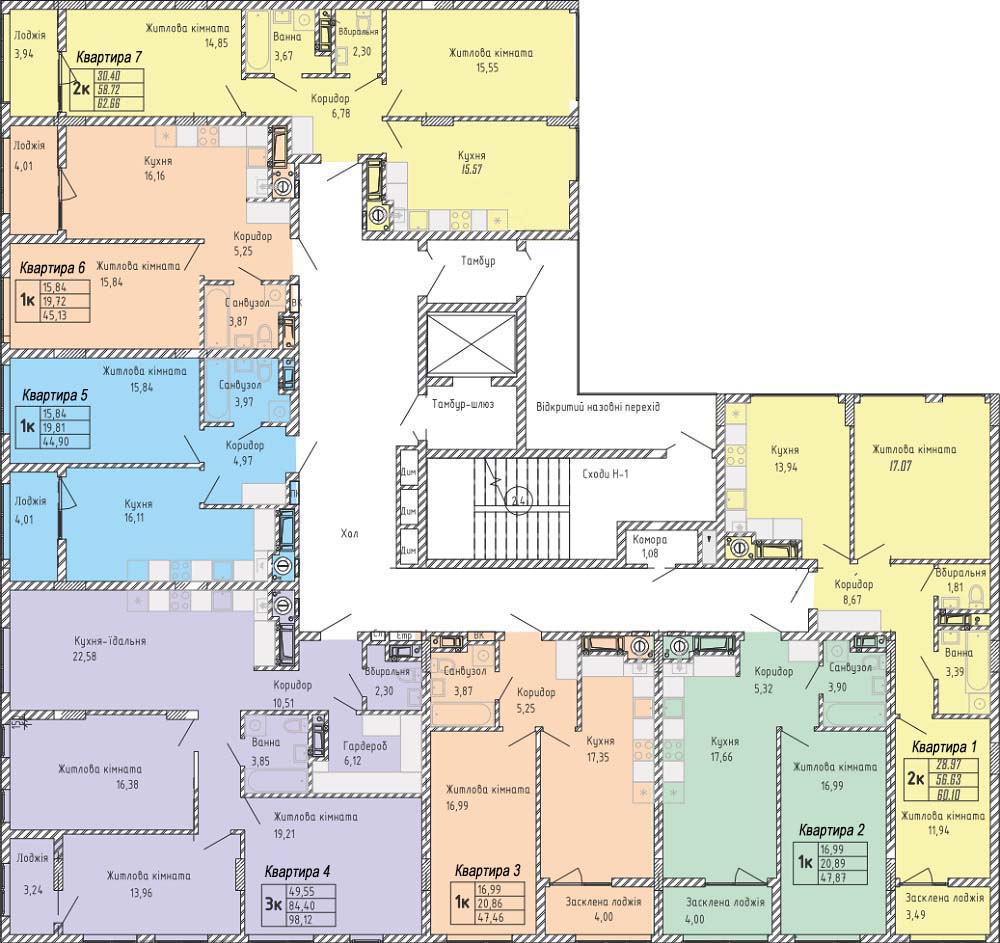 2. Після вибору секції виберіть поверх. Виберіть квартиру на плані, натисніть для збільшення.