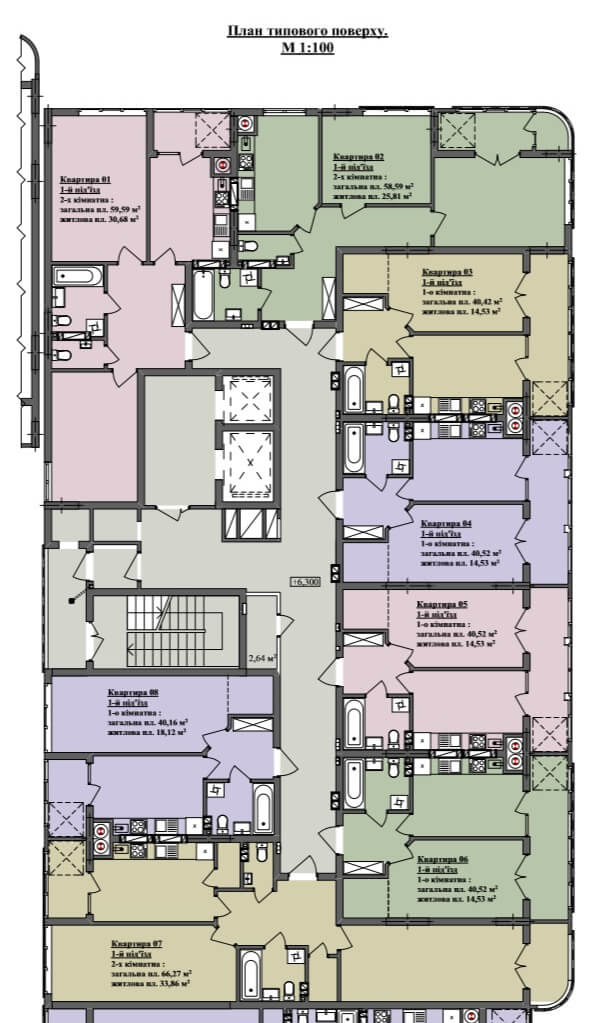 На ділянці наші фахівці запроектували дев’ять будинків різної поверховості із незалежною інженерною інфраструктурою. У частині житлових будинків для мешканців кварталу передбачено вбудовані нежитлові приміщення (торгові, офісні), а під будинками – підземний паркінг з окремими виїздами та виходами. Захід у будинки буде зі сторони внутрішнього двору та по периметру, а в громадські приміщення – зі сторони зовнішнього периметра комплексу.